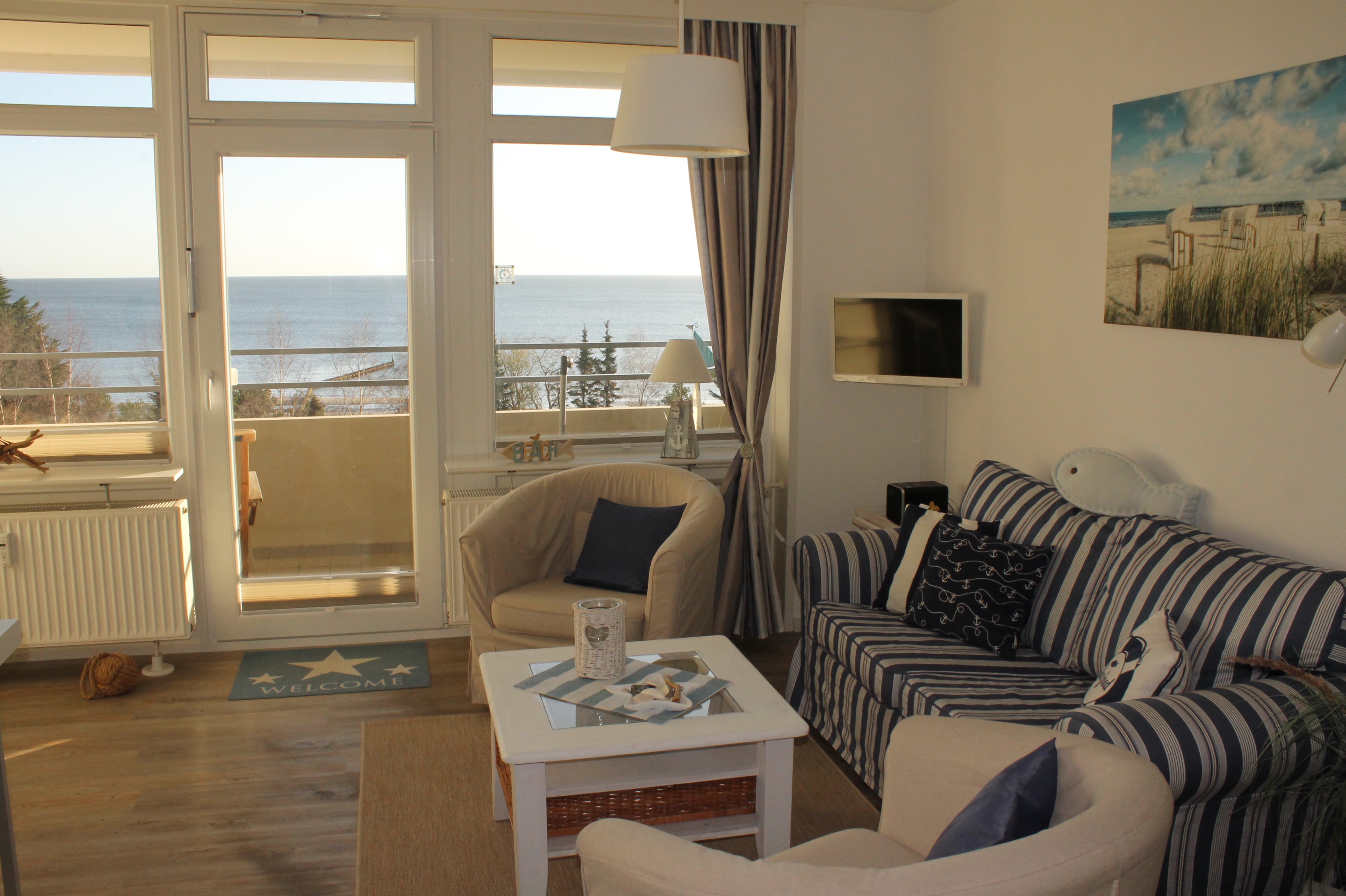 Die Ferienwohnung Meeresblick Großenbrode befindet sich direkt am Strand der Ostsee mit großem Süd/Ost Balkon. Hier können Sie MeerZeit am Fehmarnsund verbringen.