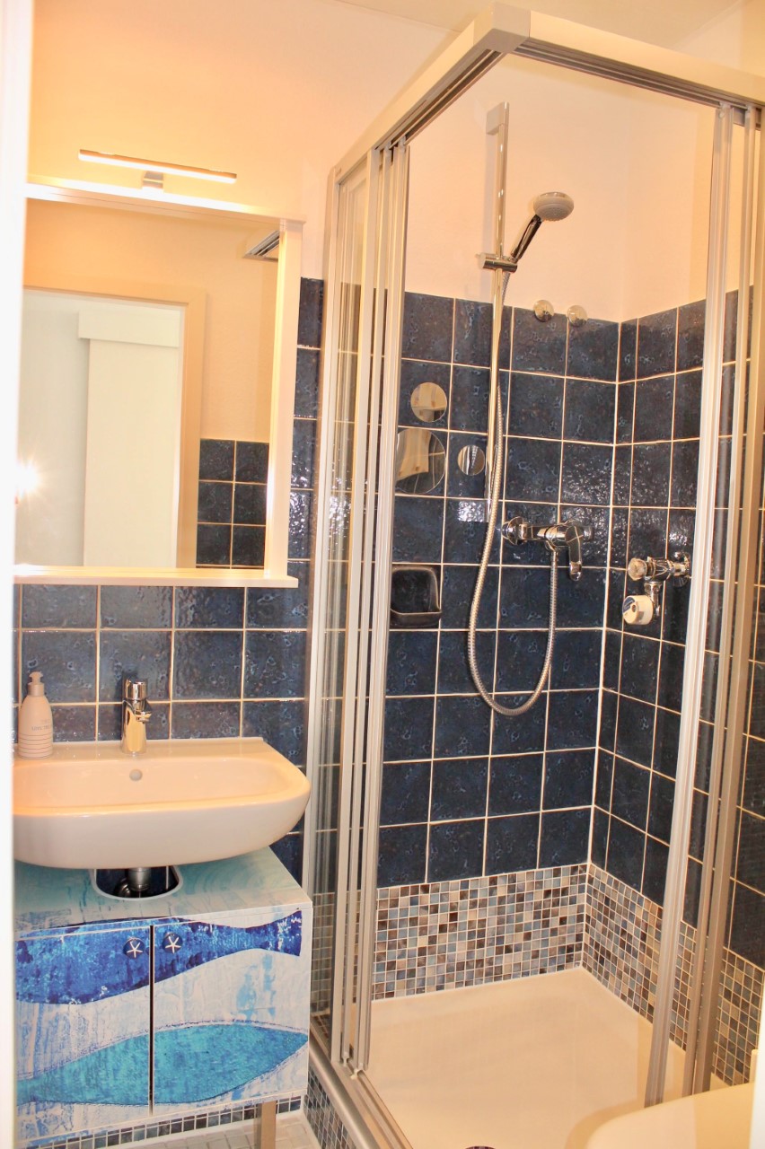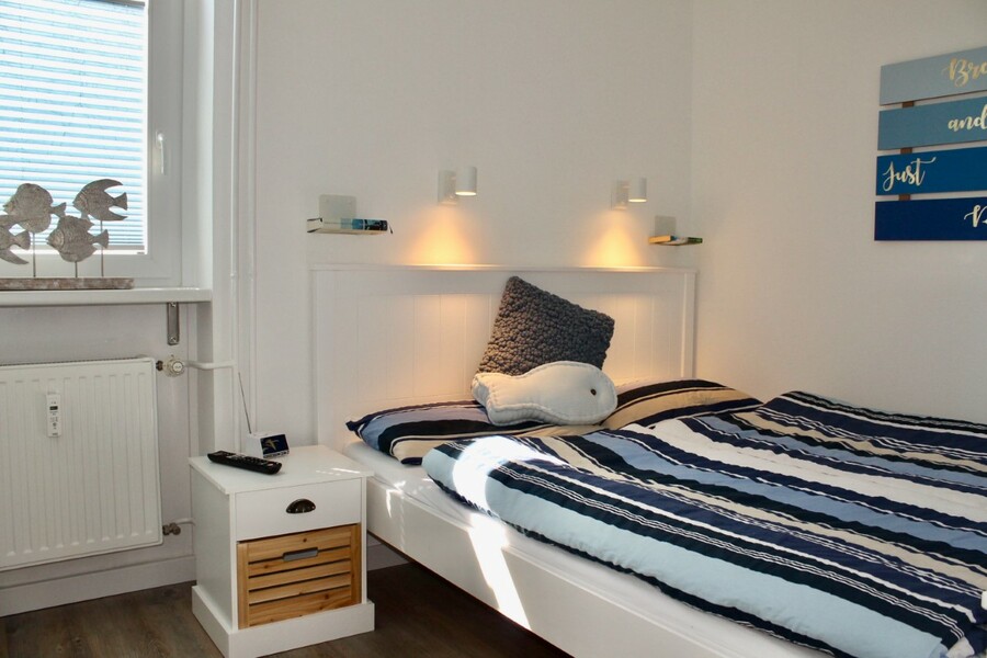 Die Wohnung hat ein Schlafzimmer mit einem Doppelbett (160x200 cm) und ein Faltbettsofa (Funktionssofa) (160x200 cm) im Wohnzimmer. Das Sofa kann man ganz einfach aufklappen und und von unten kommt eine separate Matratze nach oben auf der Sie schlafen. Im Wohnzimmer und im Schlafzimmer befindet sich jeweils ein LCD Fernseher, im Wohnzimmer mit DVD Laufwerk. Die Küche ist mit einem Geschirrspüler, einem Backofen, einem Kühlschrank mit Gefrierfach, einer Kaffeemaschine, einem Toaster, einem Wasserkocher, einem Eierkocher, einem Cerankochfeld und einem Mixer ausgestattet. Als Mieter unserer Wohnung steht Ihnen unser kostenloses WLAN zur Verfügung. Im Badezimmer finden Sie ein wandhängendes WC, einen Fön, einen Handtuchheizkörper und ein e Dusche. Neben der Eingangstür befindet sich ein kleiner offener Garderobenraum für Ihre Jacken und Schuhe. Der Balkon ist mit Teakholzmöbeln, Liege und Sonnenschirm bestückt.