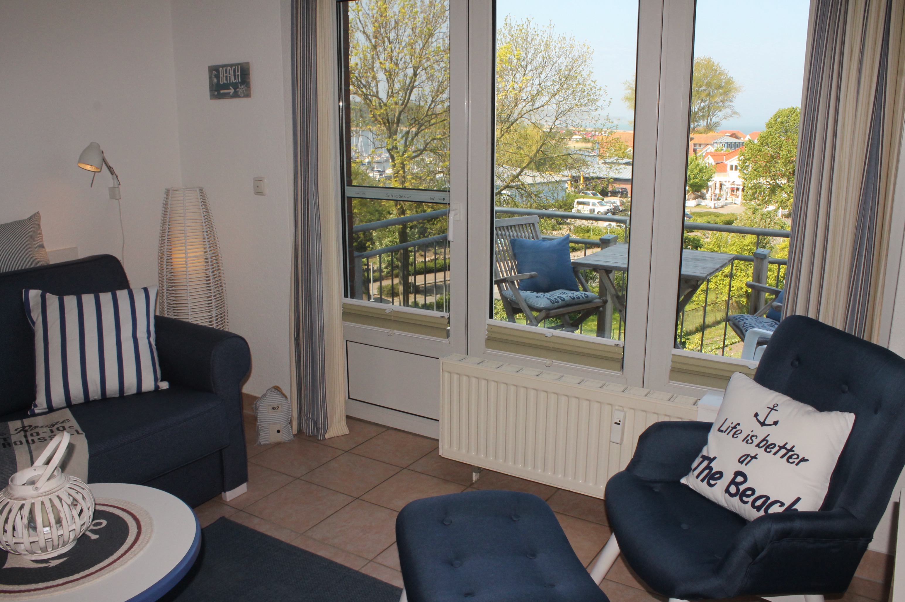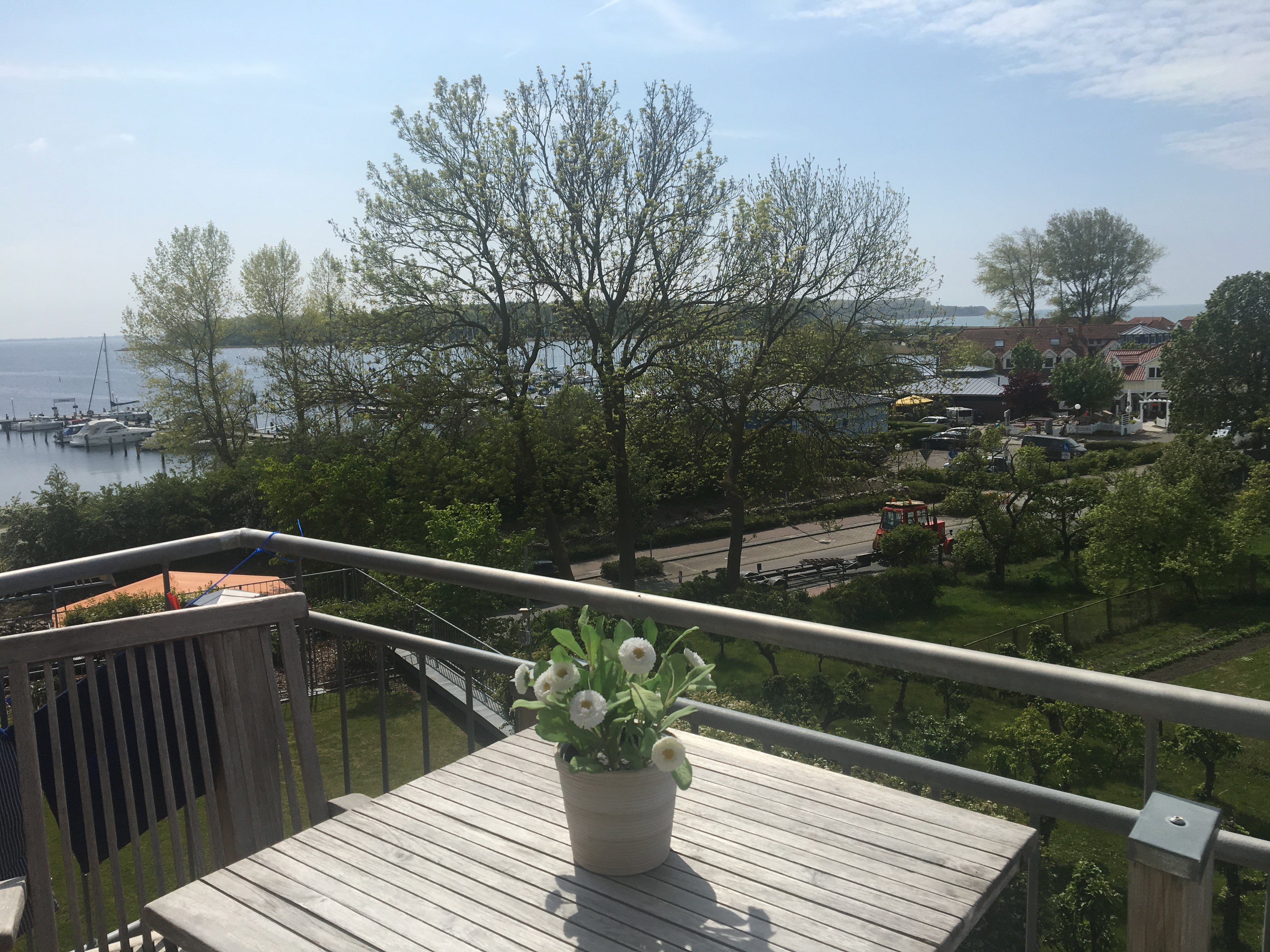 Fantastischer Blick auf das Haff, die Insel Wustrow, den Hafen und die Ostsee aus der Wohnung und vom Balkon.