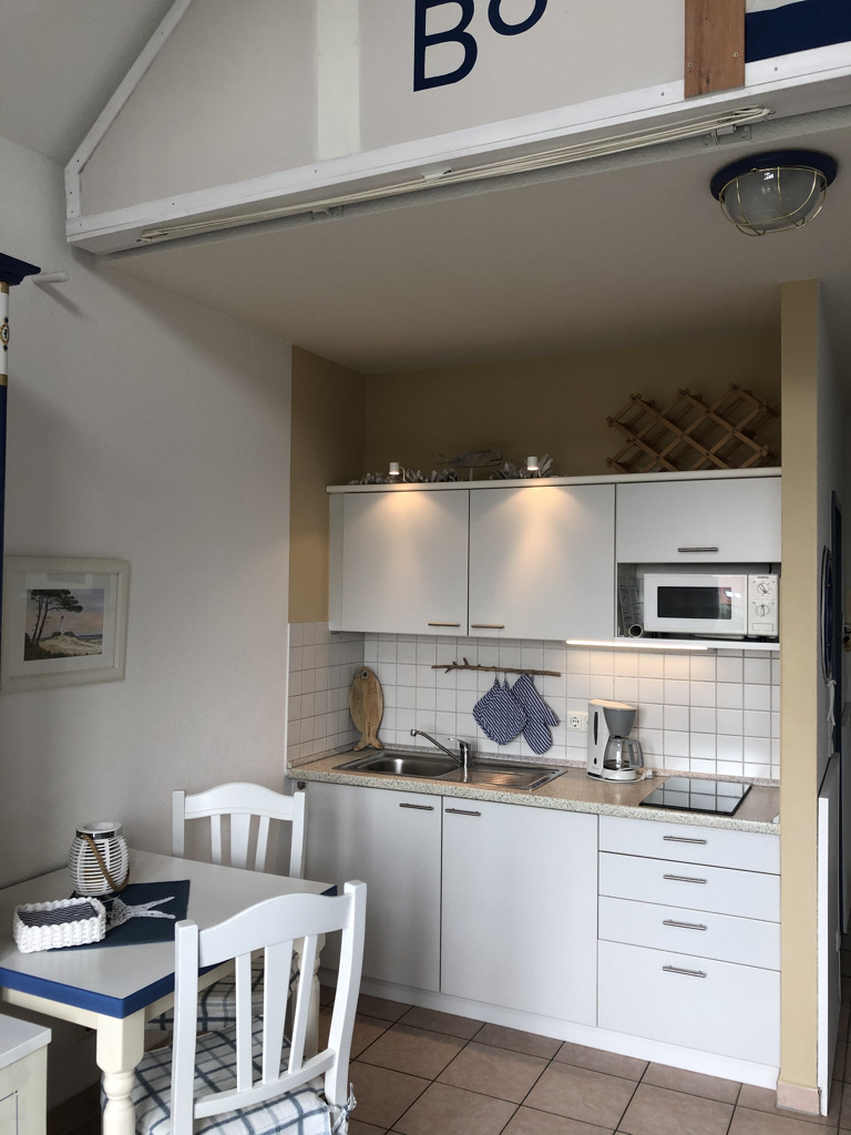 Maritim eingerichtete, sehr gepflegte Nichtraucher Ferienwohnung in einer kleinen Appartementanlage mit direktem Haff und Ostseeblick.