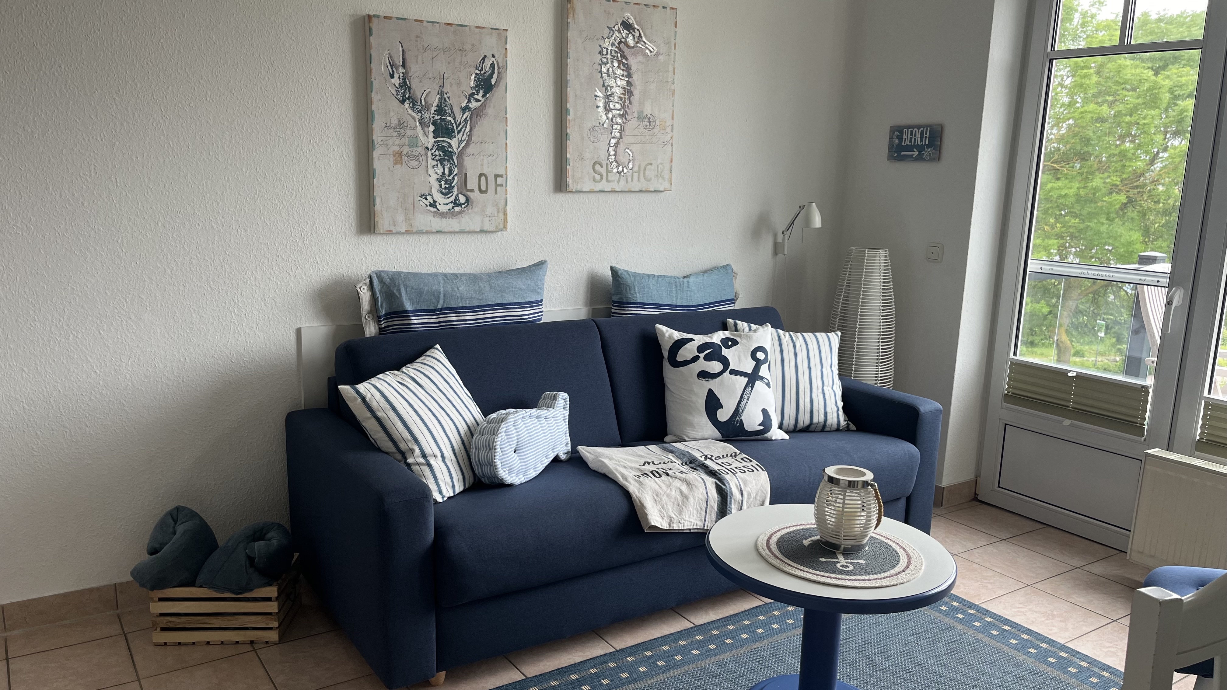 Maritim eingerichtete, sehr gepflegte Nichtraucher Ferienwohnung in einer kleinen Appartementanlage mit direktem Haff und Ostseeblick.